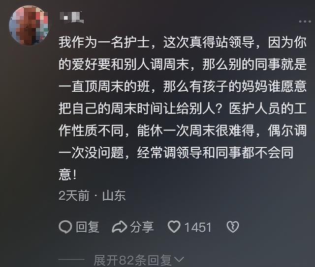 她一年到头,几乎每个月、甚至每个周末都要跟同事换班。