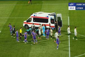 中超第4轮国安客战津门虎,第4分钟,国安左路传中,斯帕吉奇头球争顶后倒地昏迷不起,队医&救护车迅速进场!简单治疗后,救护车载着斯帕吉奇驶离球场。